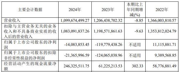2023年、2024年,中毅达营业收入分别为12.06亿元、11.00亿元,归属于上市公司股东的净利润分别为-1.20亿元、-0.14亿元,归属于上市公司股东的扣除非经常性损益的净利润分别为-1.24亿元、-0.21亿元。
