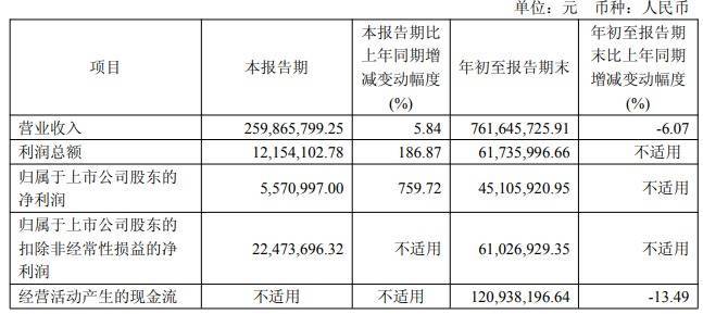 2025年前三季度,中毅达营业收入为7.62亿元,同比下降6.07%;归属于上市公司股东的净利润0.45亿元,上年同期为-0.15亿元;归属于上市公司股东的扣除非经常性损益的净利润0.61亿元、上年同期为-0.17亿元。