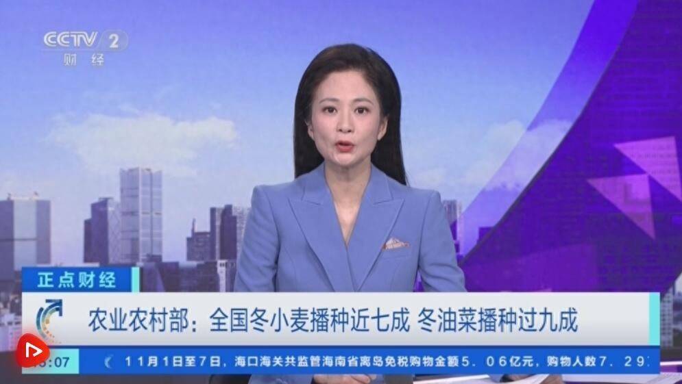 农业农村部11月11日的消息,据农情调度,截至11月10日,全国冬小麦播种近七成,全国冬油菜播种过九成。